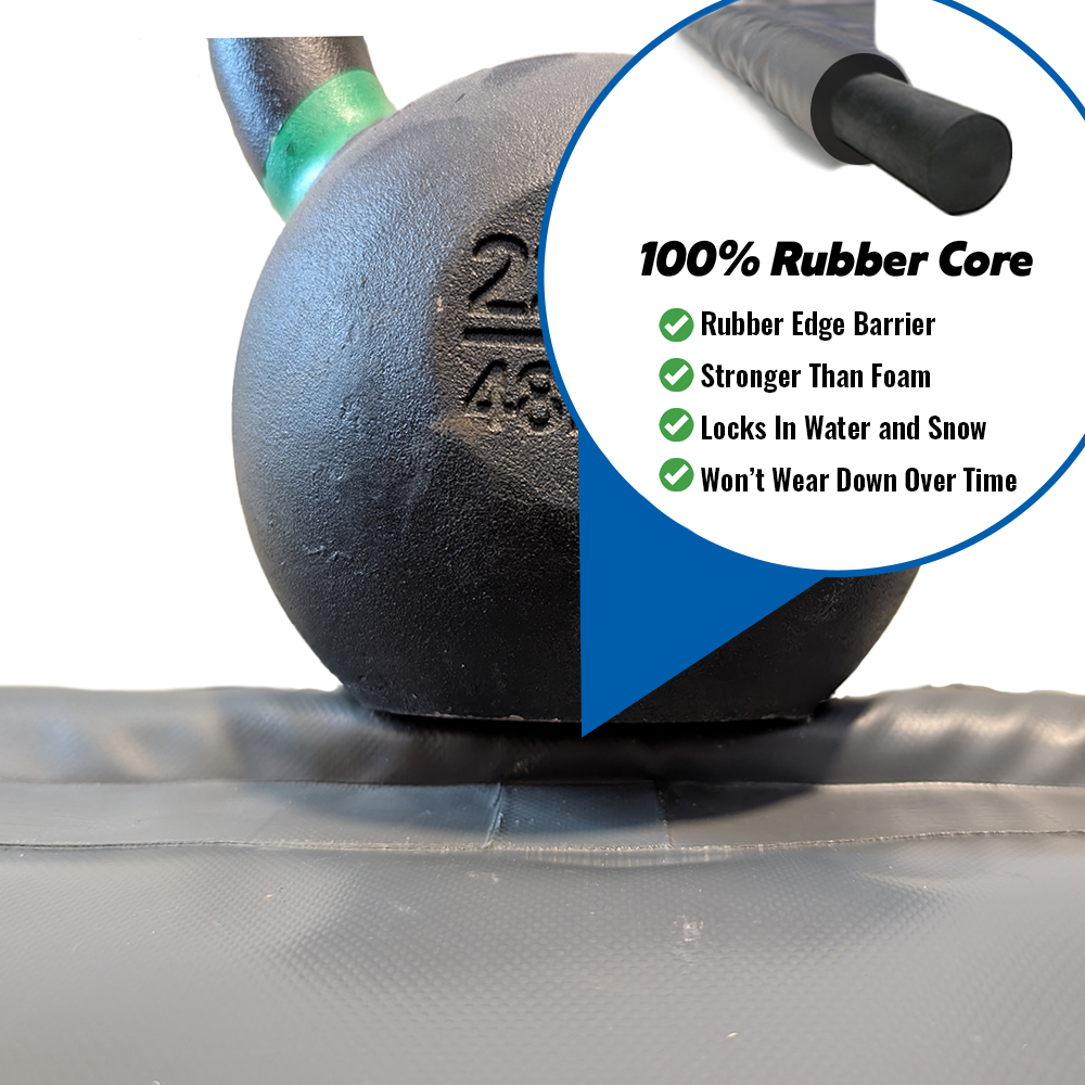Over time the dirt, slush, grime, and salt brought into the garage by vehicles can cause damage to concrete and asphalt floors, forming salt stains, making the floor slippery and unsafe, and potentially damaging valuables stored nearby. Constructed of 100% waterproof tarpaulin, the +/- 1/8” GorillaCONTAIN containment mat catches fallen dirt and debris from vehicles- keeping it from spreading onto the floors to help maintain a clean and safe garage and home. The raised GorillaCONTAIN rubber rope edge barrier prevents spills, while its one-piece construction and heat-sealed seams prevent leaks and overflow- helping to reduce slips and falls on wet, slippery floors. The sturdy barrier edge also aids in preventing lifting at the corners and allows mats to retain their shape over time.